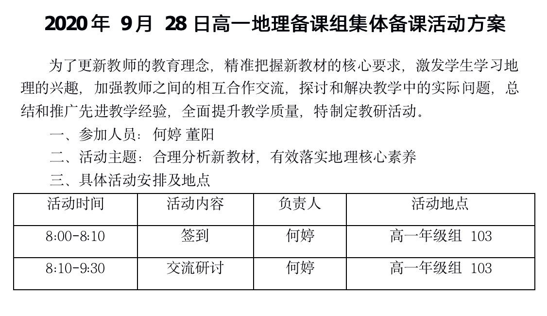 秦中高一地理备课组9月28日教研活动方案