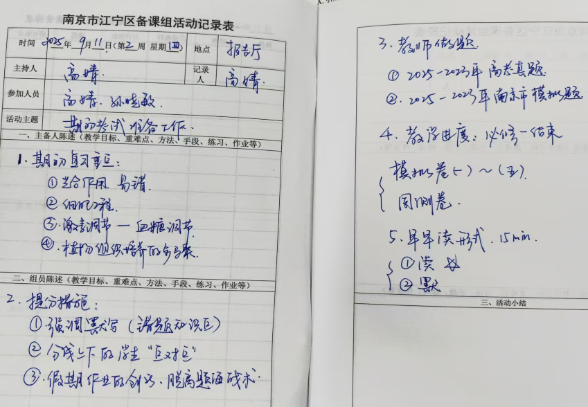 2025-2026学年第一学期高三生物备课组9月11日集体备课