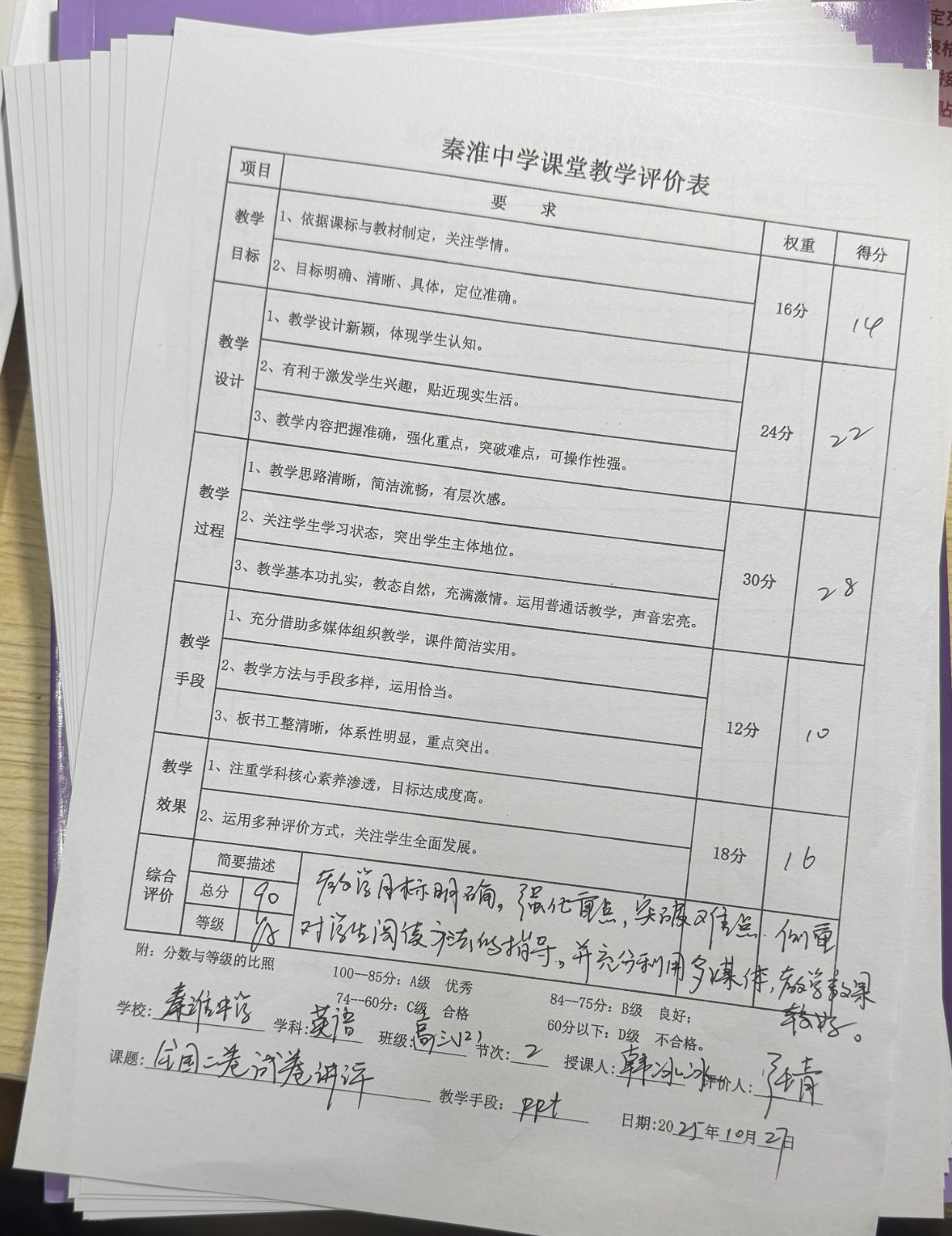 本次活动中,韩冰冰老师经过认真的备课,给全组教师展示了一节比较成功的一轮复习试卷讲评课,通过本组教师的集中研讨,提出了优点和不足之处,对于本组所有成员都有一定的意义,提升了本组教师的教学水平,也将有力提升学生的学习效果。