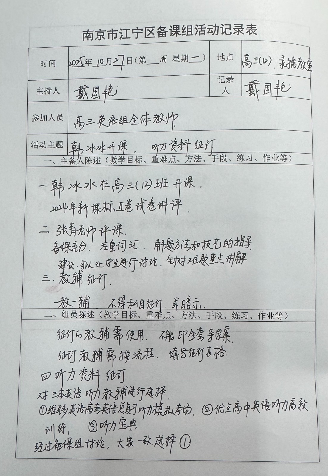 2025—2026学年度第一学期10月27日高三英语组韩冰冰老师组内公开课