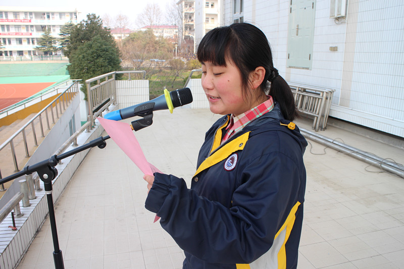 担任本周升旗手的是来自高二(5)班的李梦雪同学,李梦雪是高二(5)班的数学课代表。他学习认真,工作踏实,是同学的好榜样、老师的好助手。在上学期的期末考试中,她更是取得了年级第一的好成绩。希望她再接再厉,争取在接下来的小高考中,取得令人瞩目的成绩。以上介绍词来自班主任潘同同老师。