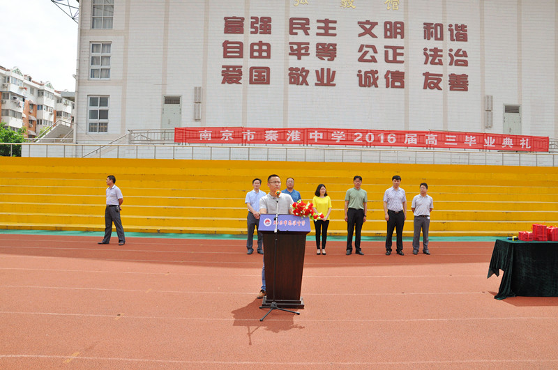 时光飞逝,岁月如歌!三年前,他们带着憧憬跨进秦中校园;三年来,校园里留下了他们成长的足迹,欢乐的笑脸;三年后的今天,他们顺利毕业,依依不舍离开母校的怀抱。在这个毕业的季节,南京市秦淮中学2016届高三毕业典礼于6月20日在田径场隆重举行。李宏兴校长、张昌卫副校长、曾春霞副校长、许明副校长、刘斌校长助理等校领导以及全体师生参加了本次典礼。