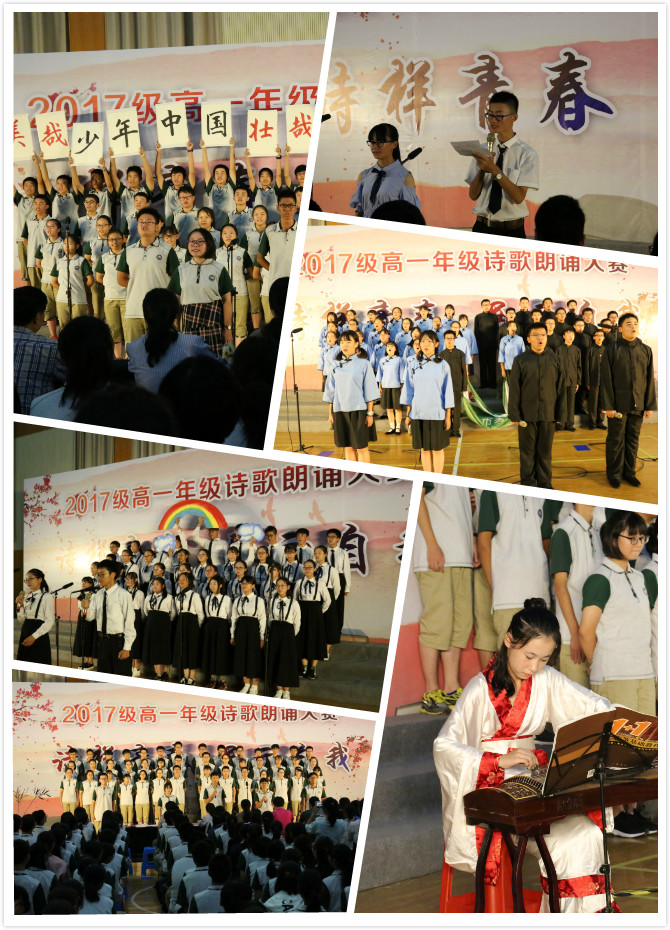 2017年9月22日晚,高一年级在体育馆举办了主题为“诗样青春,展示自我”的诗歌朗诵比赛。本次比赛本着“走近诗歌,走进青春,快乐学习,快乐阅读”的宗旨,紧密结合高一年级刚刚完成的诗歌专题的学习,动员全体高一学生积极参与。在比赛中,同学们不仅交流了诗歌朗诵的技巧,而且还通过各个班级精心安排的服装道具、背景音乐、舞台表演,展示了各自的审美爱好、兴趣特长,锻炼了组织、参与大型活动的能力。经过紧张而激烈的角逐,高一(7)班、高一(11)班的朗诵获得了一等奖。同学们表示,他们通过比赛进一步发现了诗词之美,提高了听说读写的语文能力,希望高一年级的朗诵比赛能作为秦中的优秀传统一直延续下去。