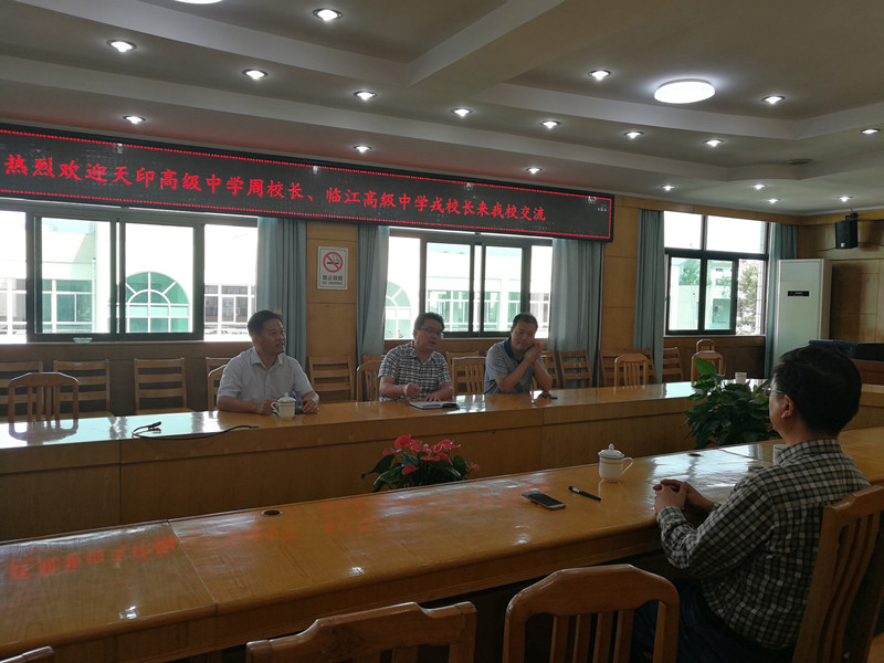 9月29日上午,天印高级中学周飞虎校长、临江高级中学戎仁堂校长等一行来我校参观交流食堂工作。刘光彬校长、胡海英副主任出席交流活动。
