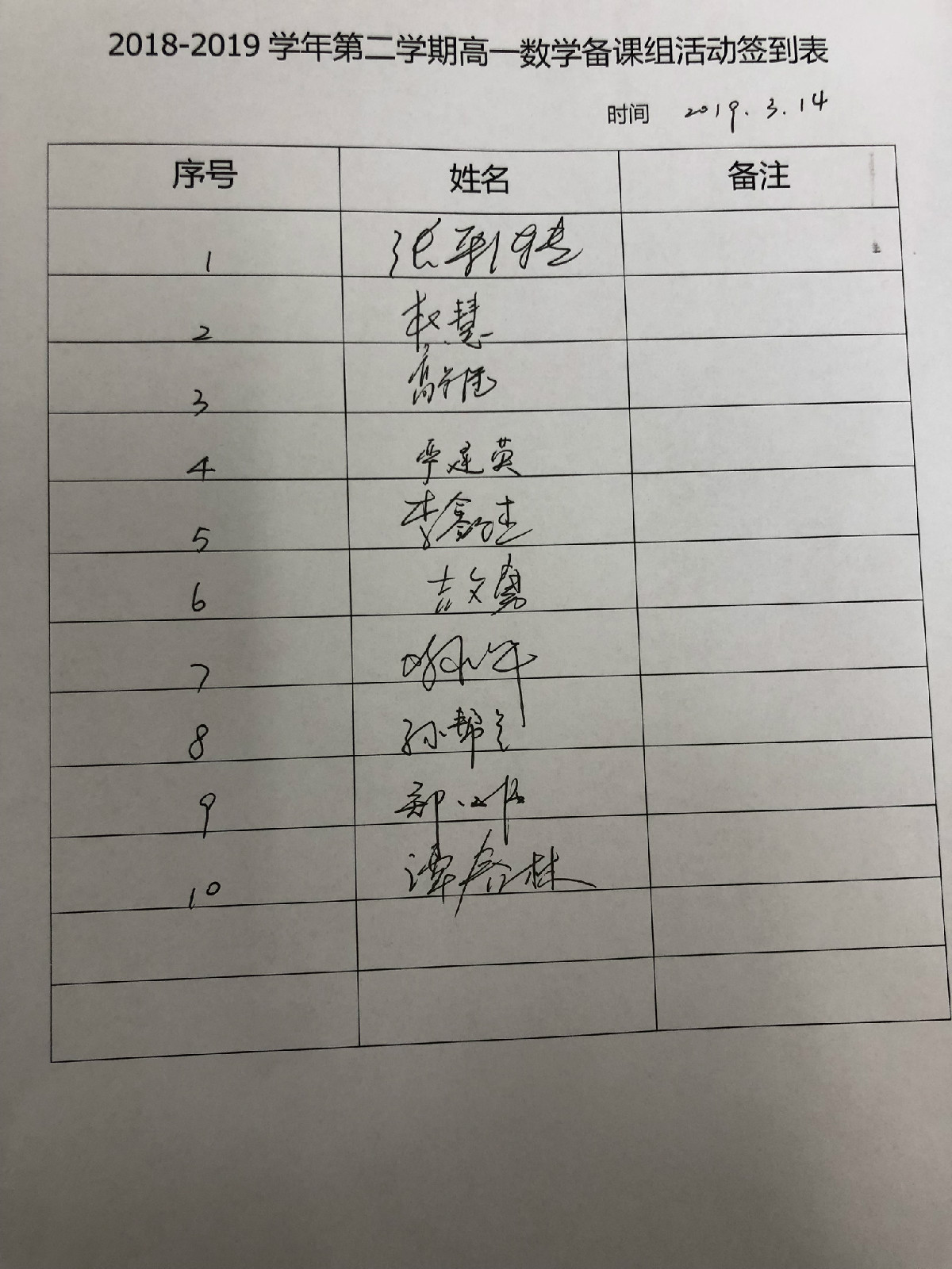 秦淮中学2018-2019学年第二学期高一数学3.14日备课组活动